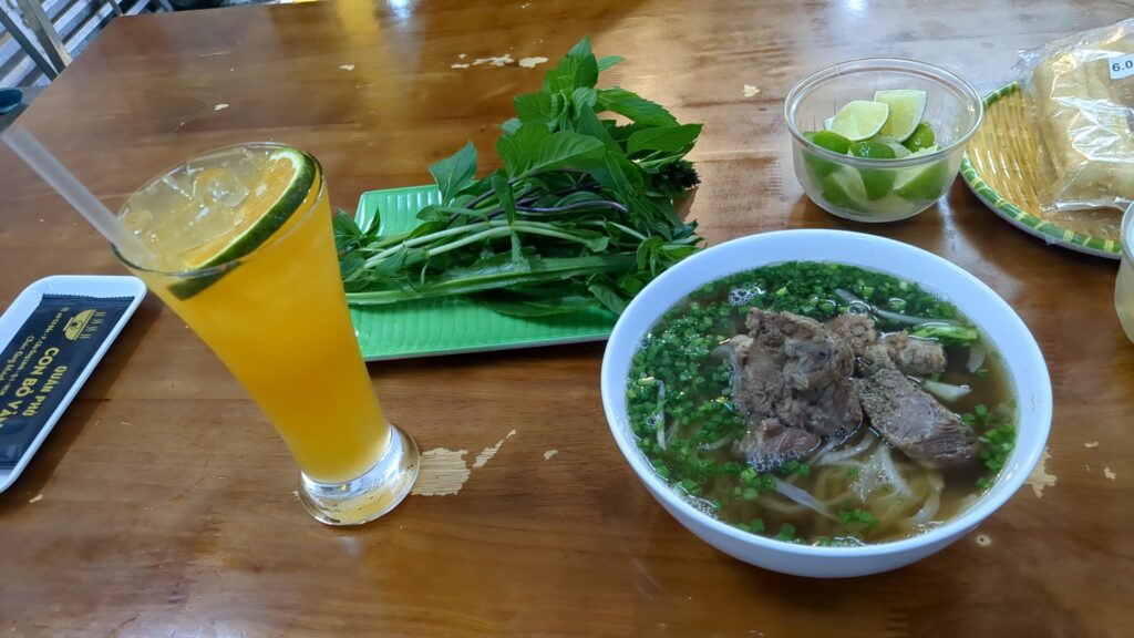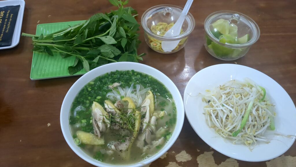 日本で食べたフォーはどこも薄味でしたが、本場のフォーはスープにしっかりと塩気が入っていて鶏の旨味もたっぷりで美味しかったです。