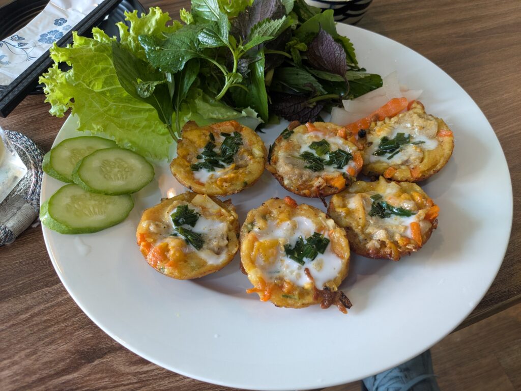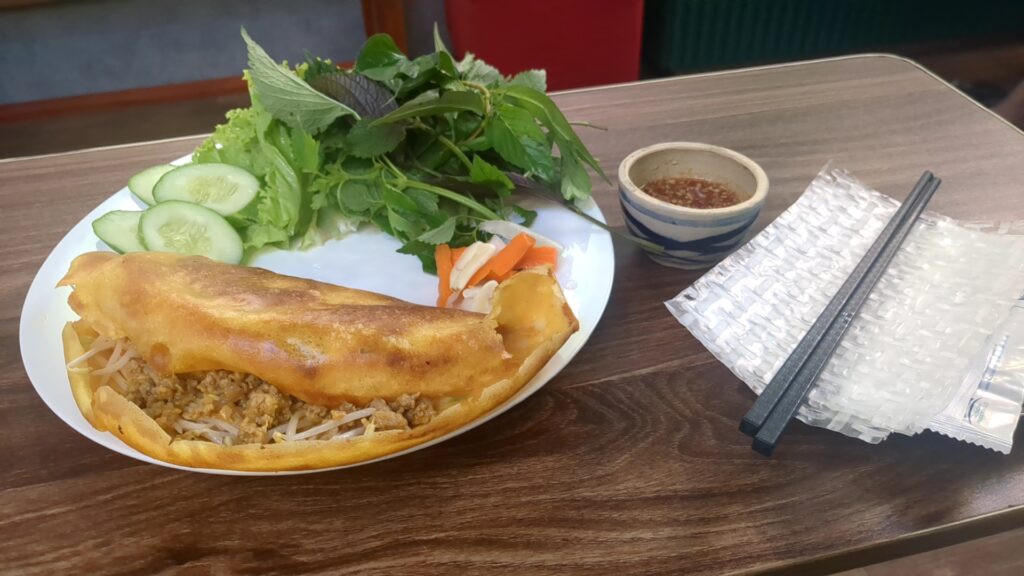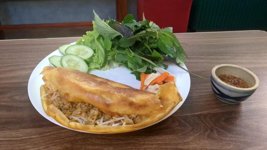 パリパリの生地で肉や野菜を包んだベトナム風のお好み焼きです。