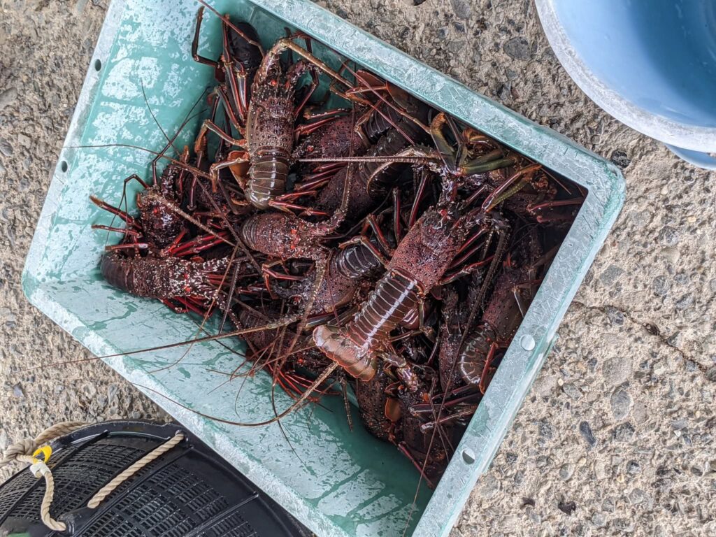 伊勢海老は夏場の禁漁時以外は買えるので布良漁港に行くかネットでお買い求めください。